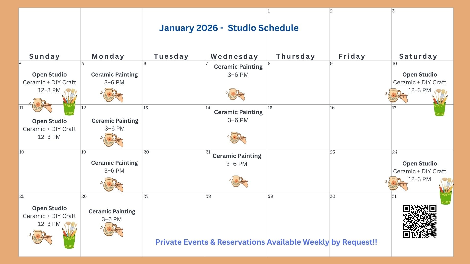 Choose from our vibrant color palette and a variety of brush sizes to bring your ceramic piece to life. Then relax and paint at your own pace in our cozy DIY Craft Lounge.